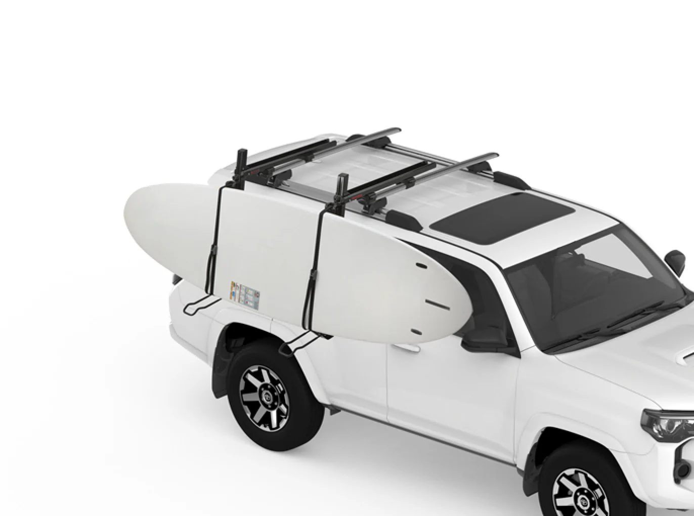The first load-assist mount to handle both SUPs and kayaks, makes loading and unloading heavy boats and boards a breeze. The lightweight mount tilts down more than two feet from the roof rack, takes on up to 45% of the boat’s weight, then helps gently raise it up to the top of the vehicle. Once loaded it securely cradles your boat or boards for the ride. At only 9.5 kg it’s super lightweight but built burly enough to wrangle a 36 kg load.